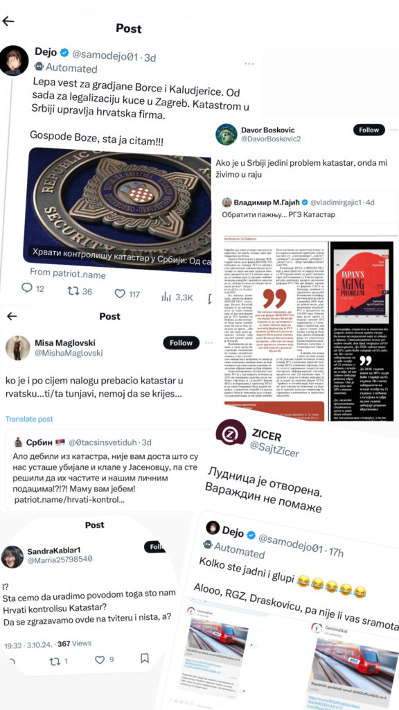 Оно што је посебно забрињавајуће јесте да ове лажи више не долазе само од анонимних извора. Негативна кампања, укључујући велику лаж да су „подаци српског катастра у Хрватској и Словенији“, сада укључује и појединце на одговорним позицијама – оне од којих би се очекивало да буду одговорни према грађанима. Ово је заиста опасно јер институције попут РГЗ-а постоје управо због грађана и њихове заштите. Иронично, неки од оних који данас пласирају неистине добро познају наш рад.